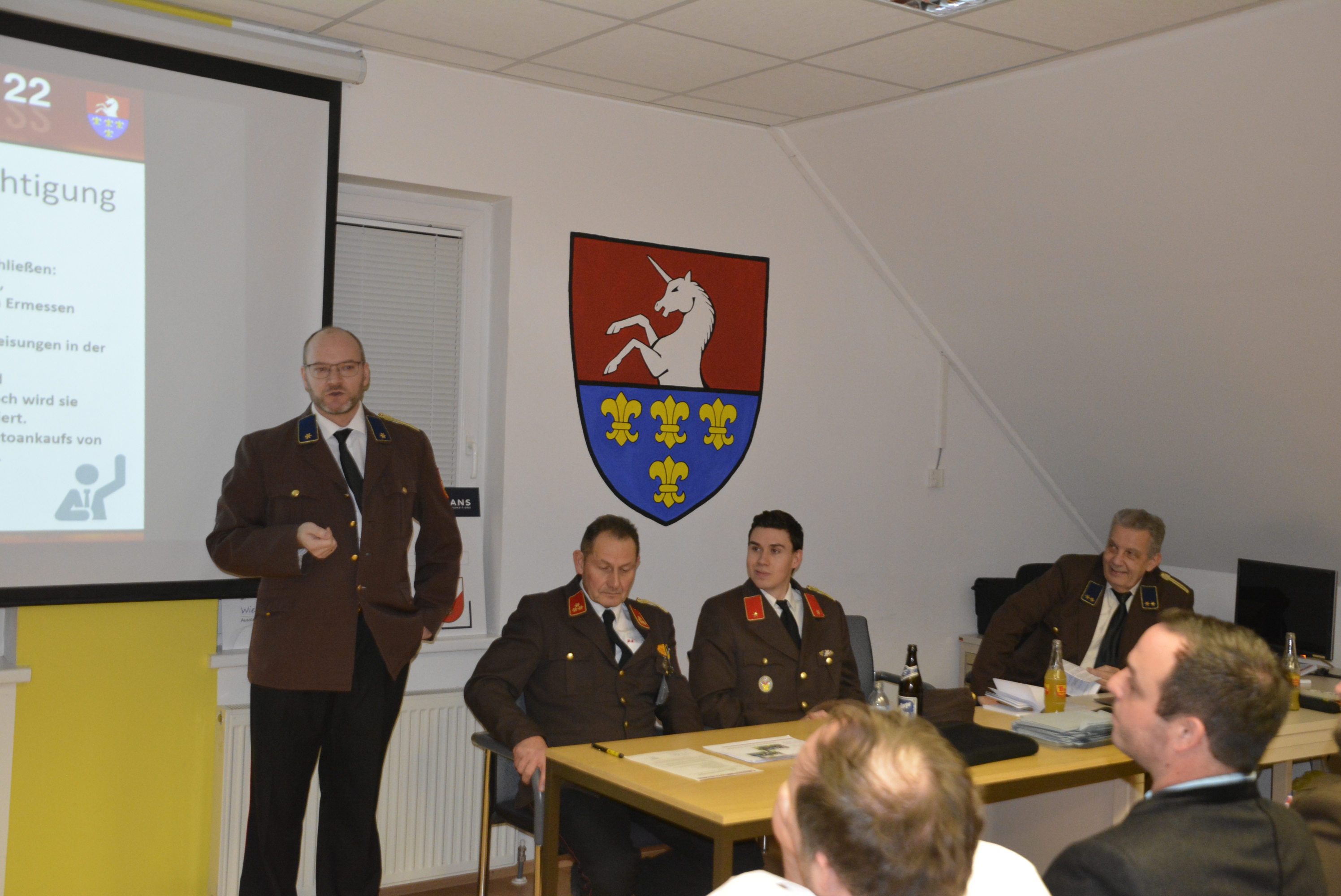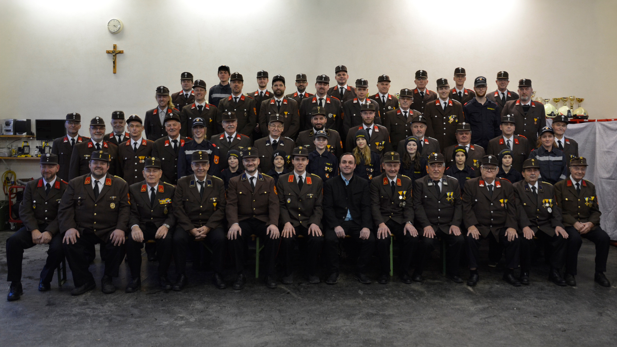 Vorgelagert zur Jahreshauptversammlung am 10. Jänner stand um 16:00 die Erstellung eines Gruppenfotos auf dem Programm. Aufgrund der winterlichen Witterungsbedingungen entschieden wir uns, dieses im Feuerwehrhaus anzufertigen.