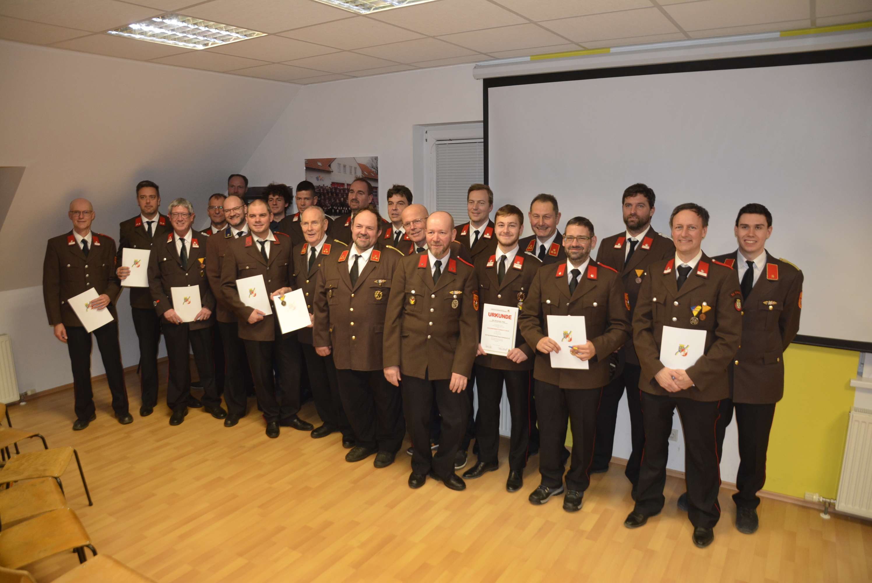 Im Jahr 2024 waren zahlreiche Kameraden an Hochwassereinsätzen beteiligt. Vom Niederösterreichischen Feuerwehrverband wurden als Dank für diese Tätigkeiten Ehrungen in Form von Urkunden und Medaillen an die Kameraden übergeben.