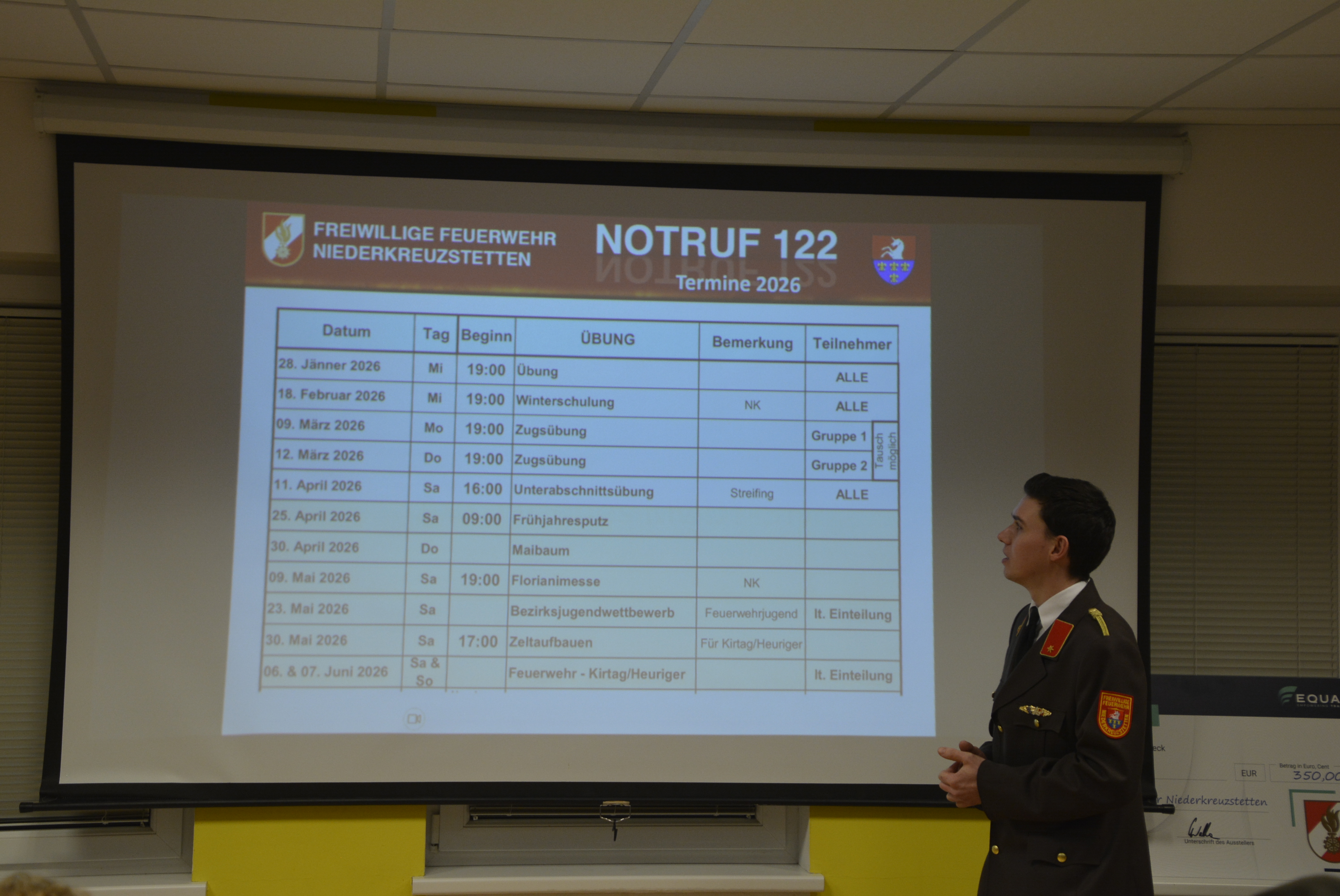 In seiner Funktion als Stellvertreter gab Felix einen Ausblick auf die geplanten Übungen und Veranstaltungen im Jahr 2026. Außerdem stellte er den geänderten Dienstpostenplan vor.
