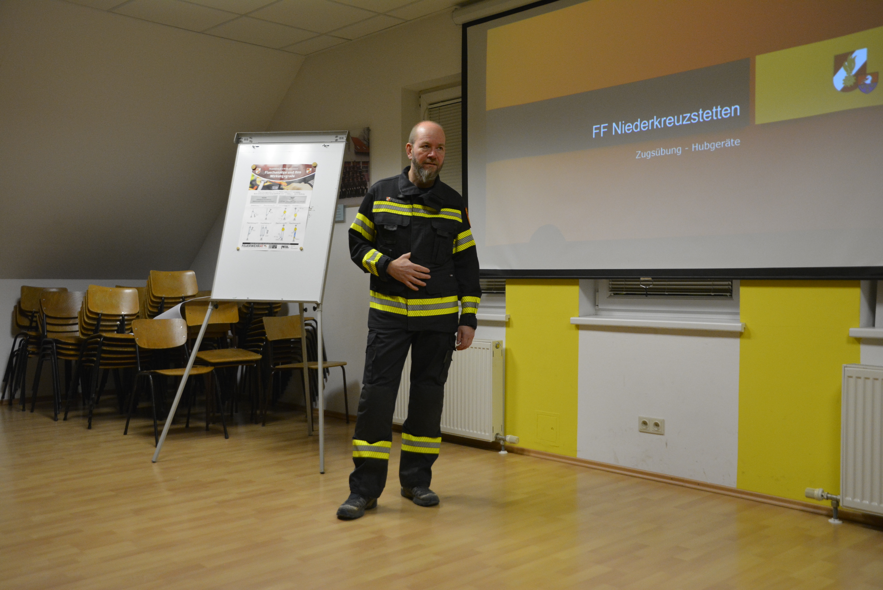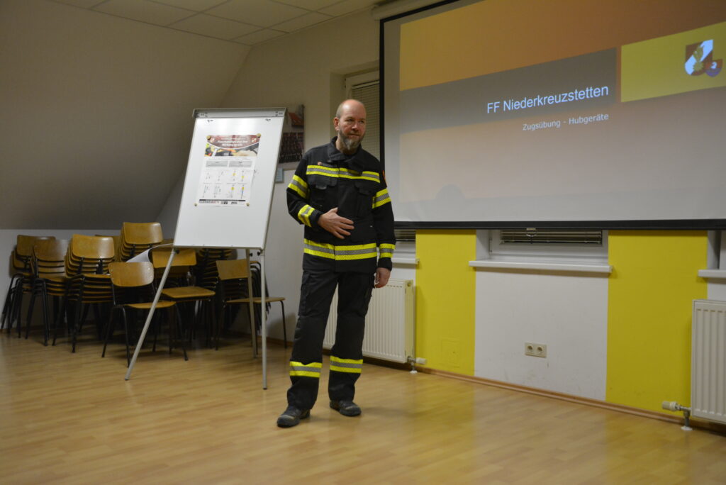Am 9. März für die Mitglieder der Gruppe 1 und am 12. März für die Kameraden der Gruppe 2 fand eine technische Übung statt. Im Mittelpunkt standen verschiedene Hebegeräte wie Greifzug, Hebekissen, Eisenbahnwinde, Schere, Spreizer, Rettungszylinder und weitere Ausrüstungsgegenstände. Zu Beginn wurden diese Geräte im Schulungsraum anhand einer PowerPoint‑Präsentation theoretisch erläutert.