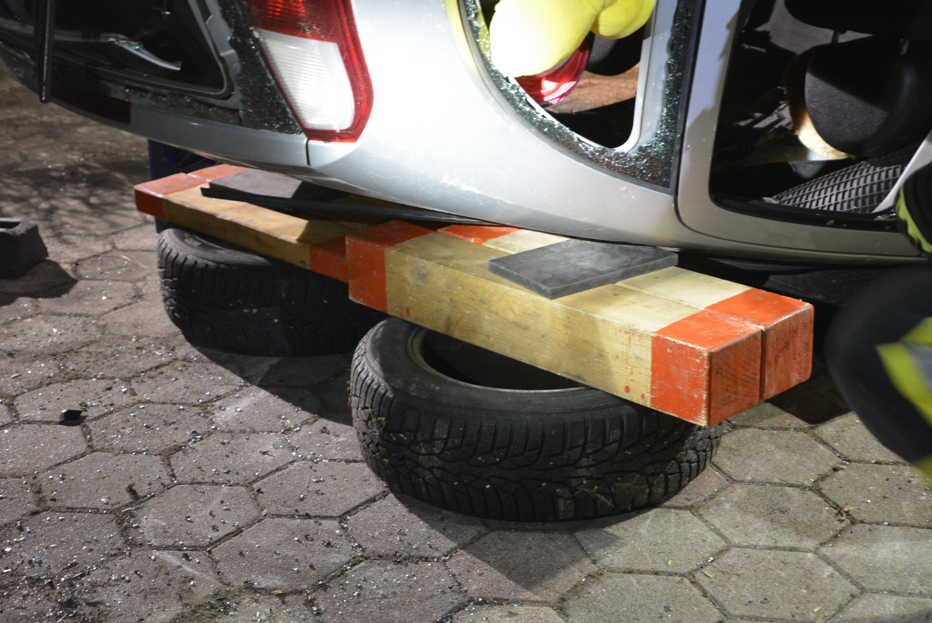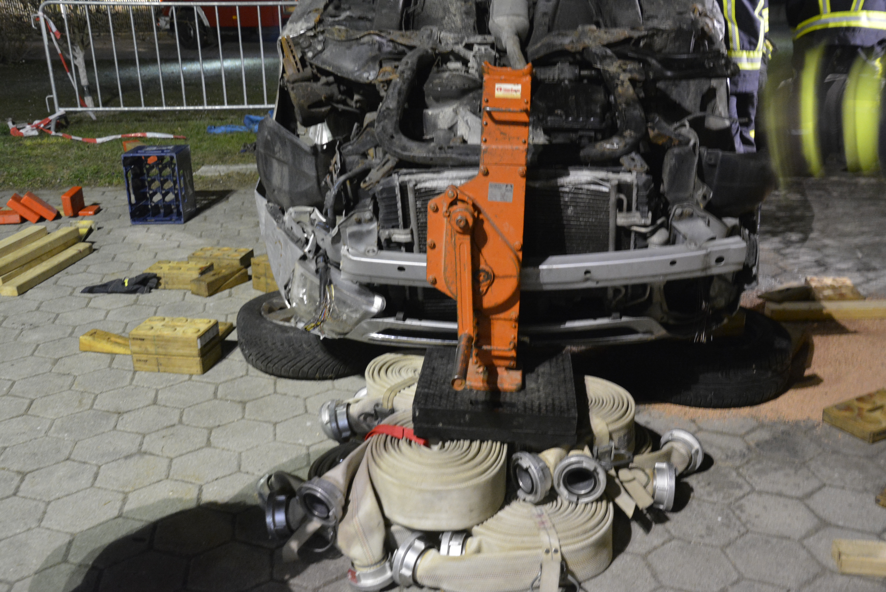 Nach dem erfolgreichen Anheben des PKW musste dieser wieder kontrolliert abgelassen und das gesamte Material ordnungsgemäß in den Fahrzeugen verstaut werden.