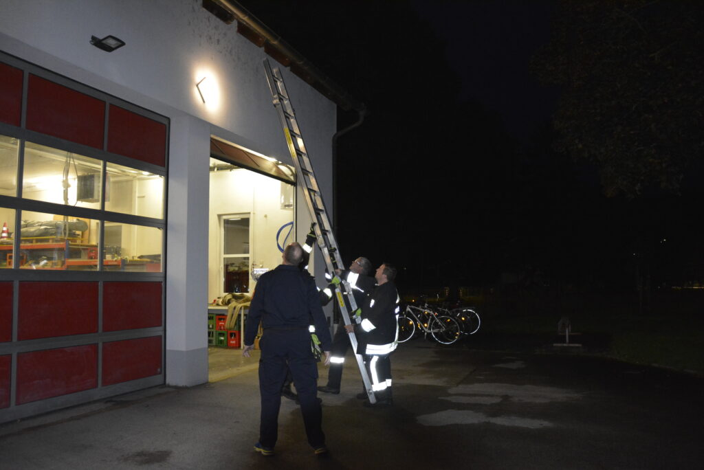 Bei dieser Station nutzten wir die Steckleiter, um einen Zettel von einer Lampe im Außenbereich des Feuerwehrhauses zu holen. Um dies bewerkstelligen zu können, wurde der richtige Umgang mit Leitern besprochen.
