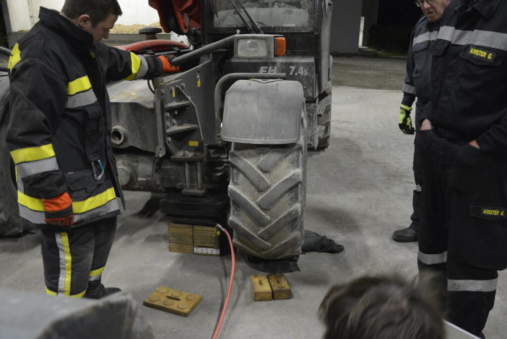 Bei dieser Station musste eine Person, dargestellt durch einen Zettel, welcher sich unter einem Reifen des Teleskopladers befand, befreit werden. Zum Anheben des Reifens wurde ein Hebekissen verwendet. Nach dem Befreien der Person wurde der Text des Zettels, bestehend aus Namen und Adressdaten, per Funk an die Einsatzleitung kommuniziert.