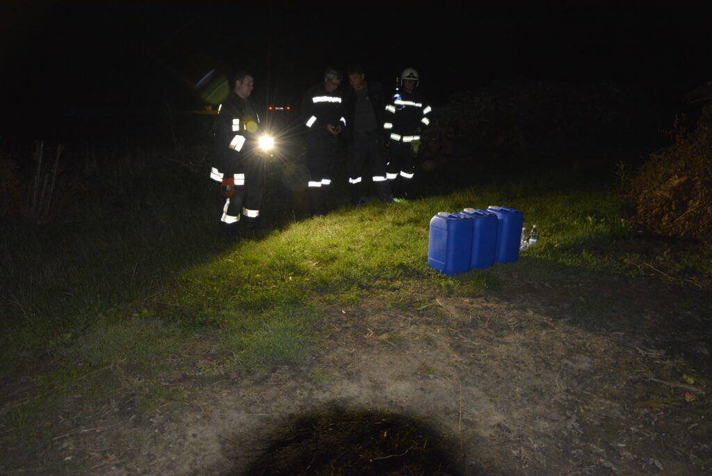 Bei dieser Station befanden sich drei Kanister mit unterschiedlich hohem Flüssigkeitsstand sowie drei Trinkflaschen, gefüllt mit unterschiedlicher Temperatur. Mit Hilfe der Wärmebildkamera musste bei den Kanistern festgestellt werden, welcher von ihnen den höchsten Flüssigkeitsstand aufwies. Bei den Flaschen bestand die Aufgabe darin, die wärmste Flasche zu identifizieren und das Ergebnis an die Einsatzleitung zu funken.