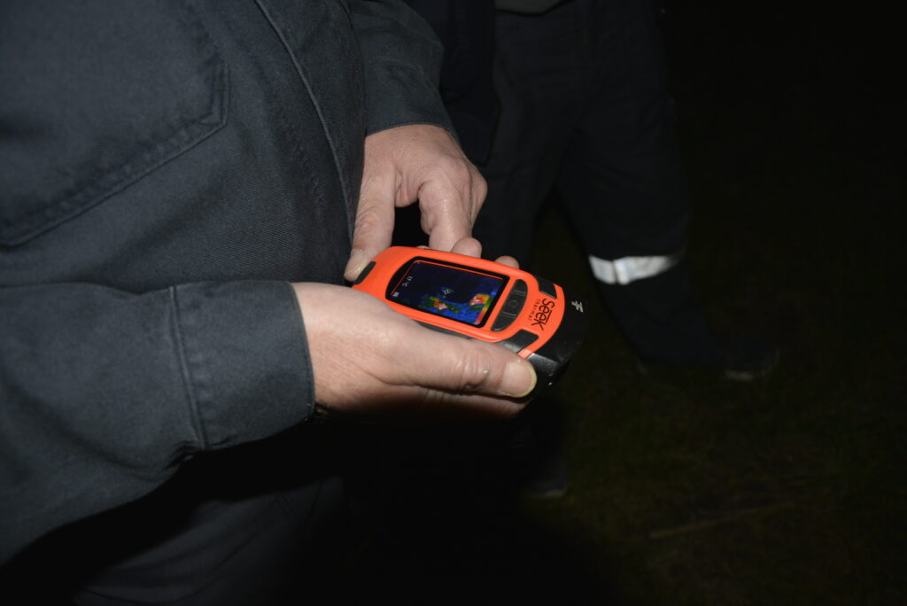 Im Anschluss suchten wir zwei Jugendliche im Bereich der Teichanlage mit Hilfe der Wärmebildkamera. Dies stellte sich als kleine Herausforderung dar, da sie schwer zu erkennen waren. Auch über diese Tätigkeit und den jeweiligen Fortschritt wurde die Einsatzleitung per Funk informiert.